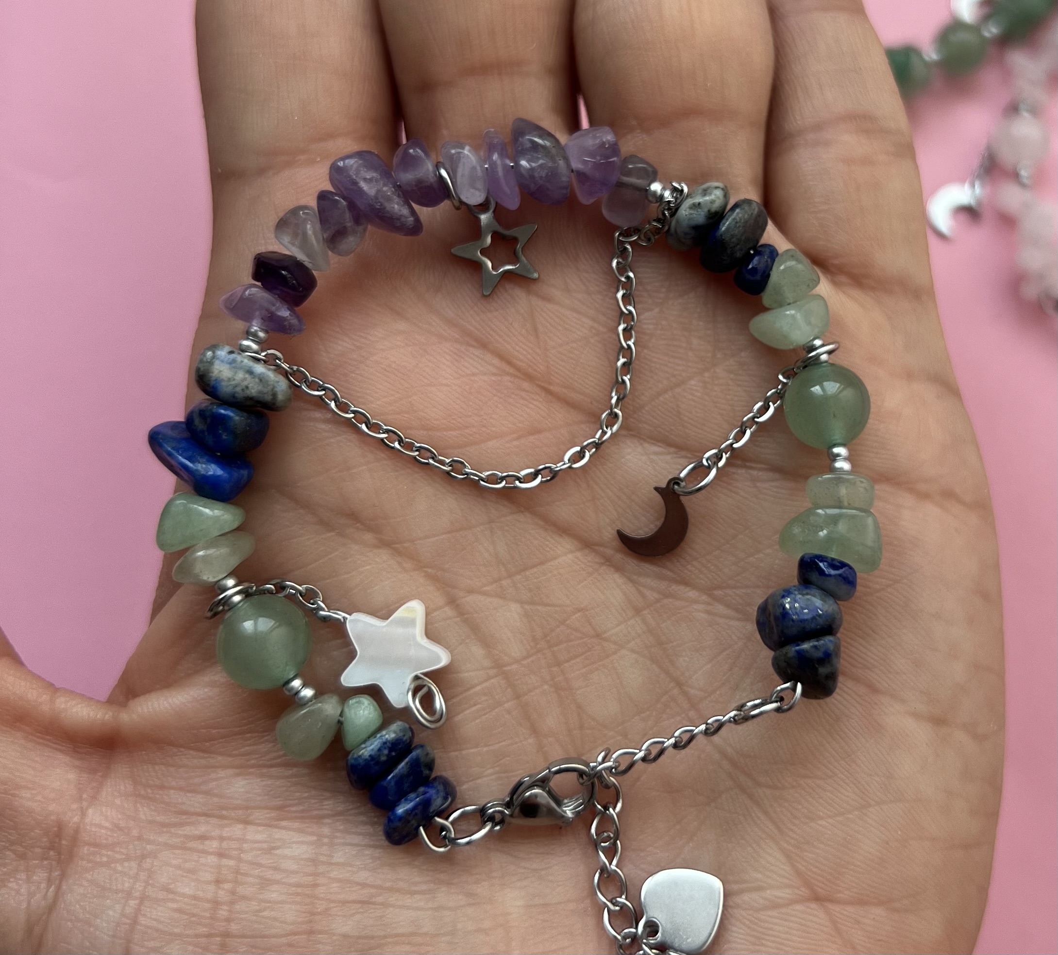 این دستبند برای اینکه انرژی لازم رو بهت بده و زیبایی آش حفظ بشه بهتره فقط ۲ سنگ داخلش کار بشه