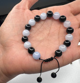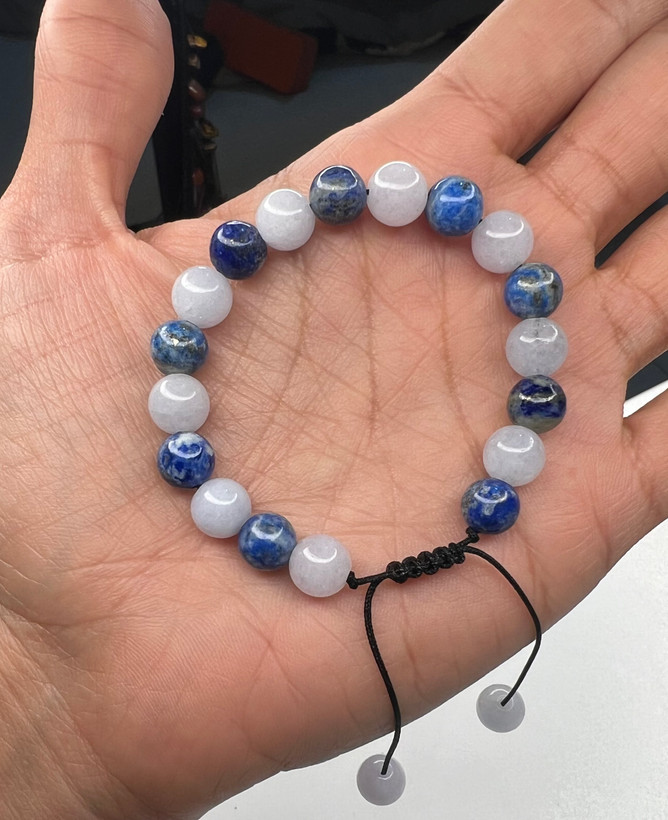 این دستبند با سه نوع سنگ قابل اجراس و توجه داشته باشید هرچه تعداد نوع سنگ کم باشد و حجم هر سنگ زیاد باشد یعنی اگر کلا از یک سنگ مثلا سیترین استفاده شود انرژی این سنگ خیلی بیشتر است تا اینکه ۳ نوع سنگ کار شود و حجم هر سنگ کمتر باشد