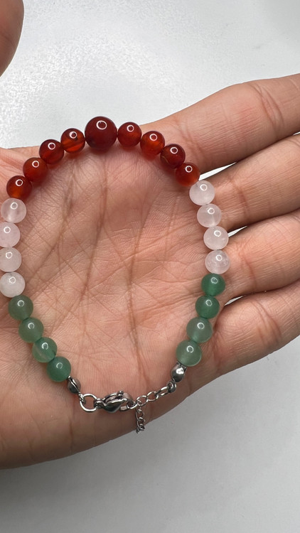 این دستبند با سه نوع سنگ قابل اجراس و توجه داشته باشید هرچه تعداد نوع سنگ کم باشد و حجم هر سنگ زیاد باشد یعنی اگر کلا از یک سنگ مثلا سیترین استفاده شود انرژی این سنگ خیلی بیشتر است تا اینکه ۳ نوع سنگ کار شود و حجم هر سنگ کمتر باشد