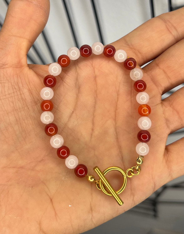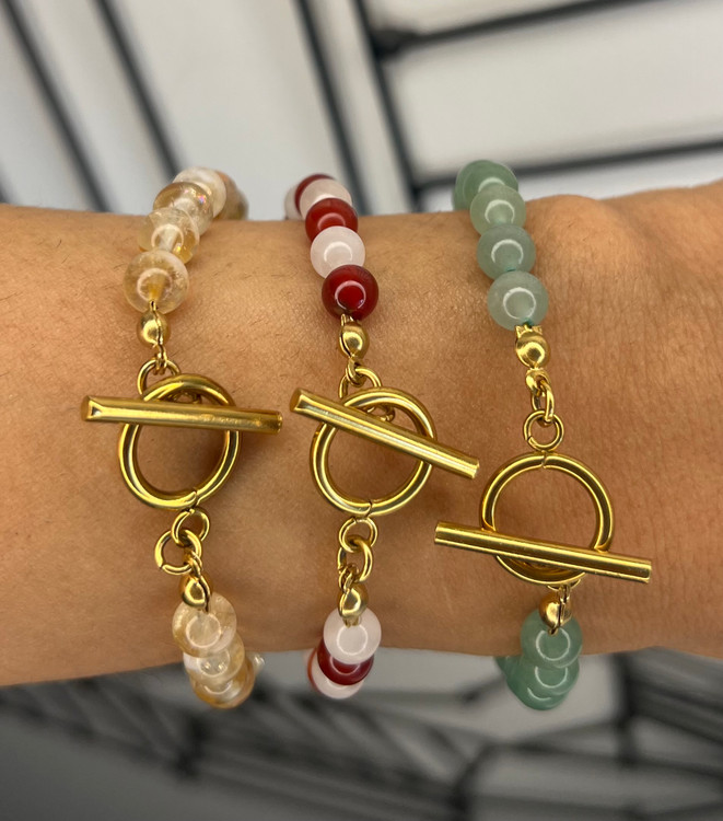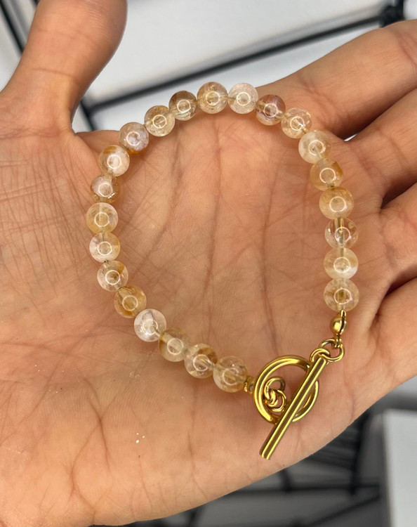 این دستبند با سه نوع سنگ قابل اجراس و توجه داشته باشید هرچه تعداد نوع سنگ کم باشد و حجم هر سنگ زیاد باشد یعنی اگر کلا از یک سنگ مثلا سیترین استفاده شود انرژی این سنگ خیلی بیشتر است تا اینکه ۳ نوع سنگ کار شود و حجم هر سنگ کمتر باشد
