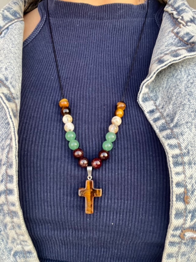 این گردنبند شامل سنگهای چشم ببر سیترین و اونتورین هست که برای موفقیت پیشرفت رزق وروزی برکت و فروانی و شانس استفاده میشه