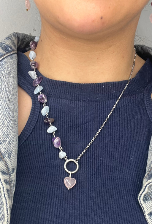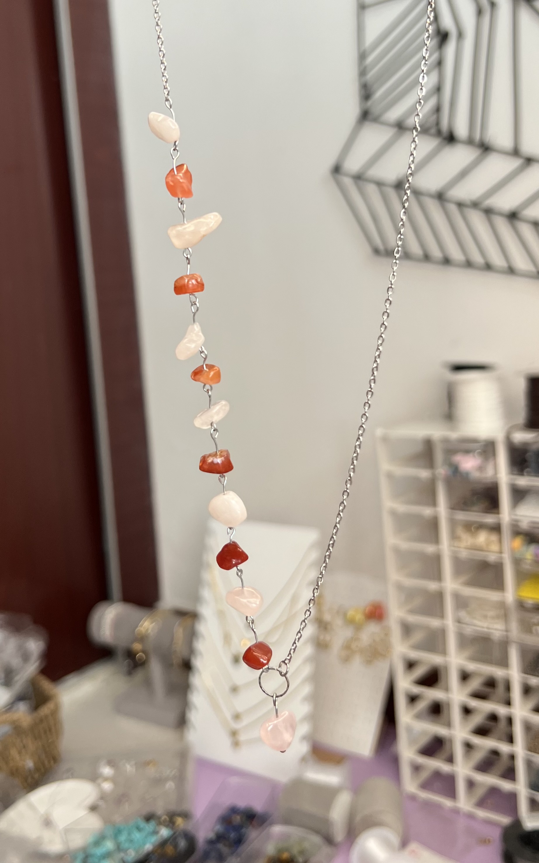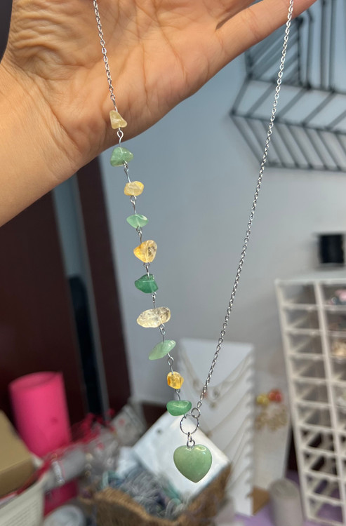 این گردنبند با سه نوع سنگ قابل اجراس و توجه داشته باشید هرچه تعداد نوع سنگ کم باشد و حجم هر سنگ زیاد باشد یعنی اگر کلا از یک سنگ مثلا سیترین استفاده شود انرژی این سنگ خیلی بیشتر است تا اینکه ۳ نوع سنگ کار شود و حجم هر سنگ کمتر باشد