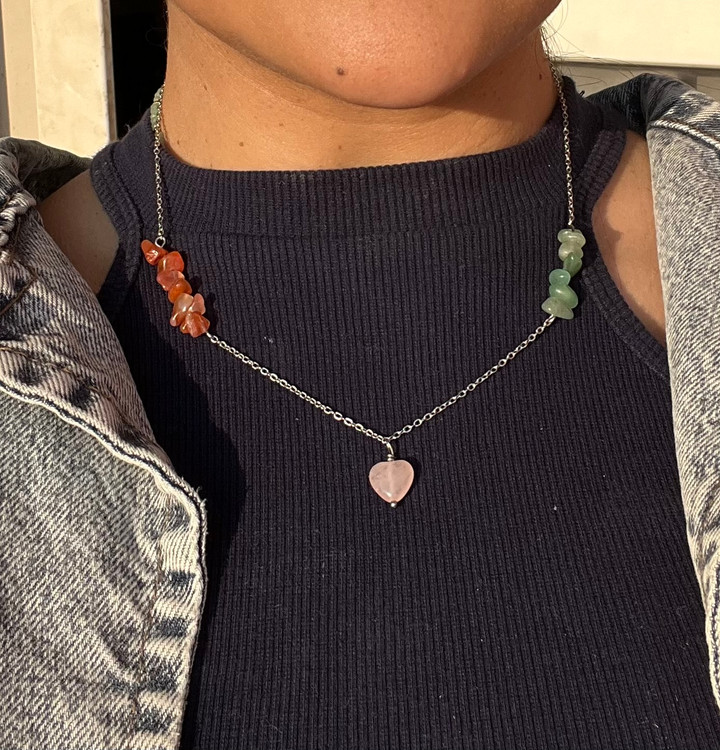 این گردنبند با۲ نوع سنگ قابل اجراس و توجه داشته باشید هرچه تعداد نوع سنگ کم باشد و حجم هر سنگ زیاد باشد یعنی اگر کلا از یک سنگ مثلا سیترین استفاده شود انرژی این سنگ خیلی بیشتر است تا اینکه ۲نوع سنگ کار شود و حجم هر سنگ کمتر باشد