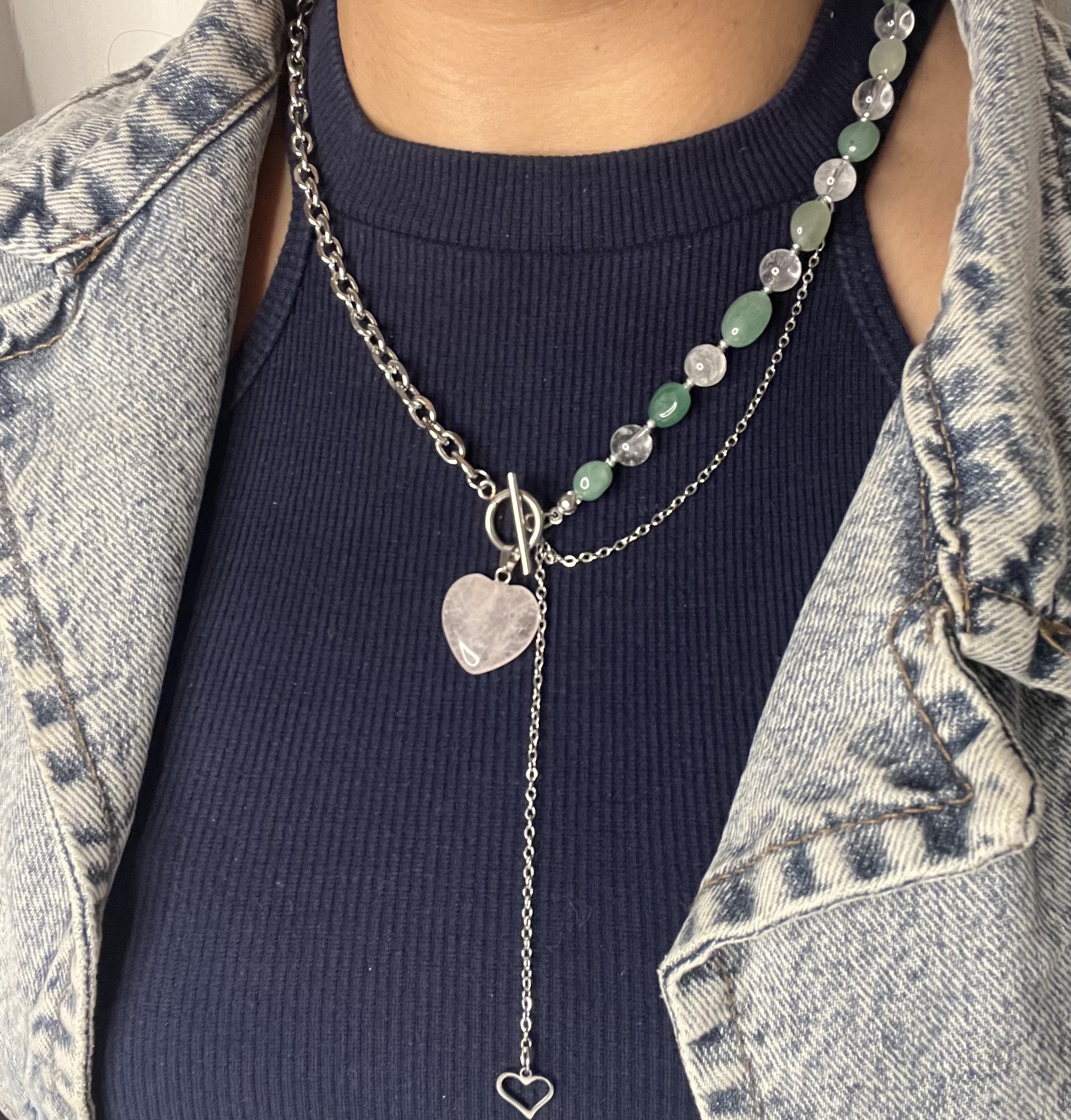 این گردنبند با ۳ تا ۴ نوع سنگ قابل اجراس و توجه داشته باشید هرچه تعداد نوع سنگ کم باشد و حجم هر سنگ زیاد باشد یعنی اگر کلا از یک سنگ مثلا سیترین استفاده شود انرژی این سنگ خیلی بیشتر است تا اینکه ۴ نوع سنگ کار شود و حجم هر سنگ کمتر باشد